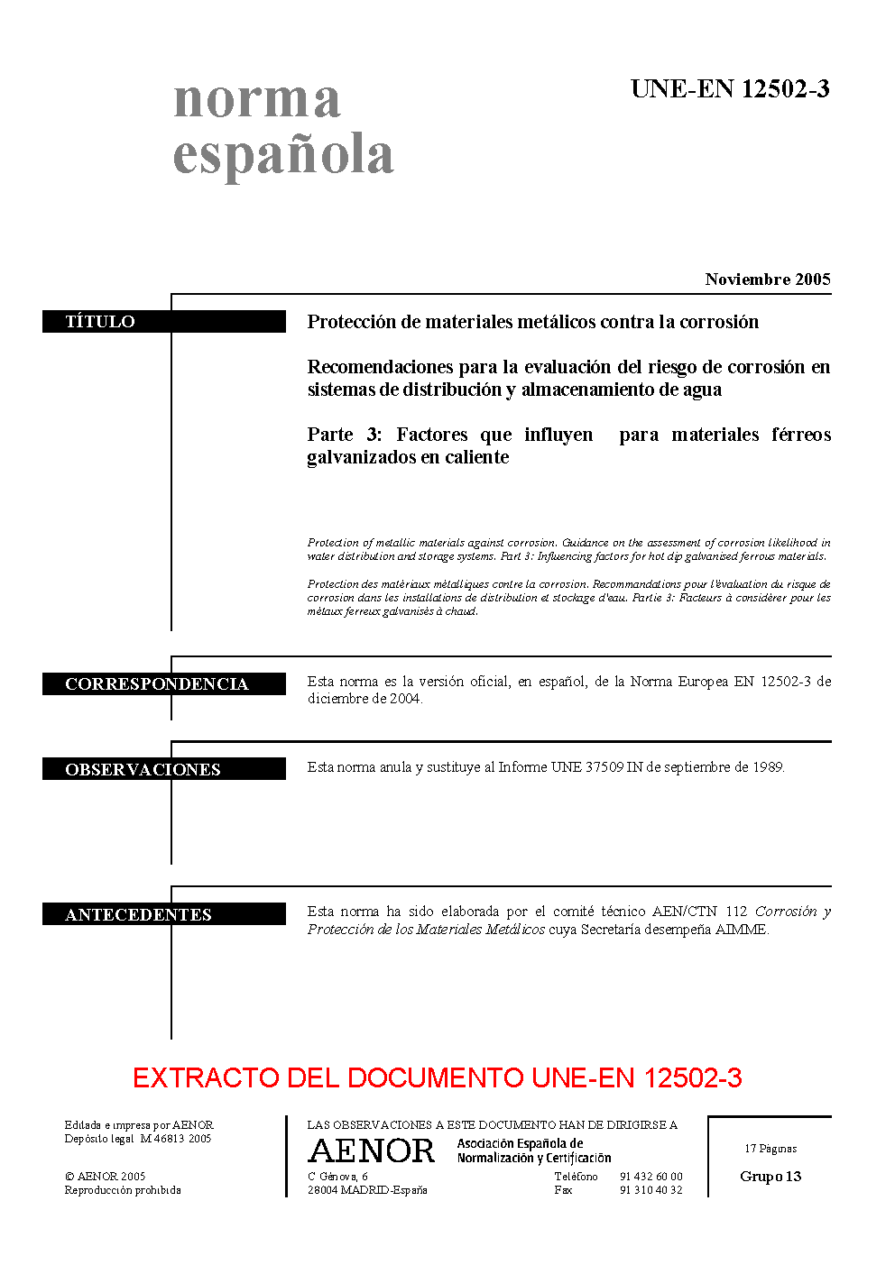 | Publisher | Asociacion Espanola de Normalizacion y Certificacion (AENOR) |