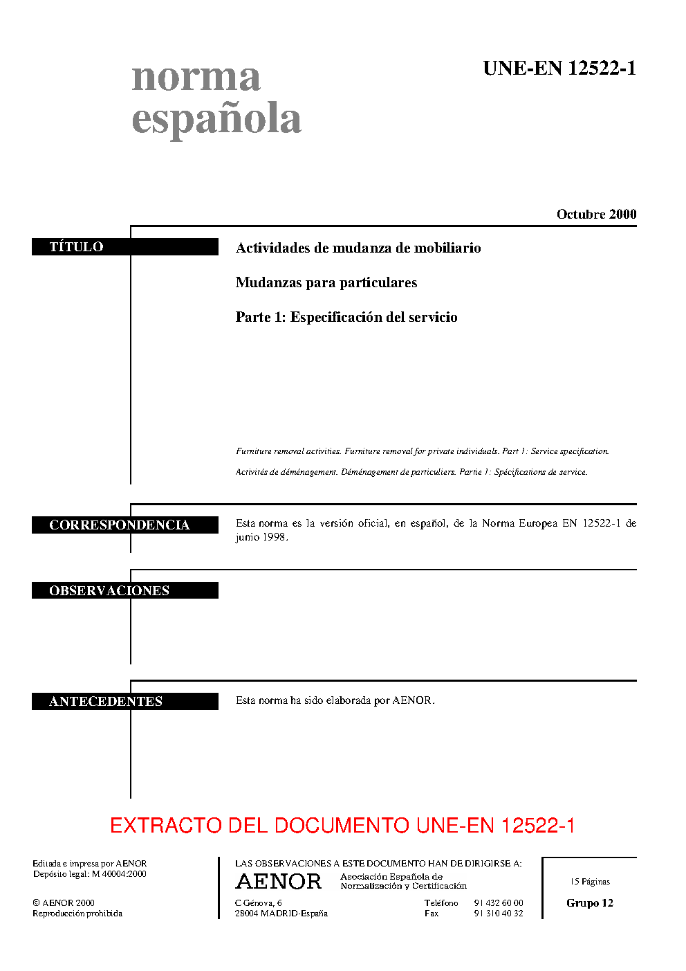 | Publisher | Asociacion Espanola de Normalizacion y Certificacion (AENOR) |