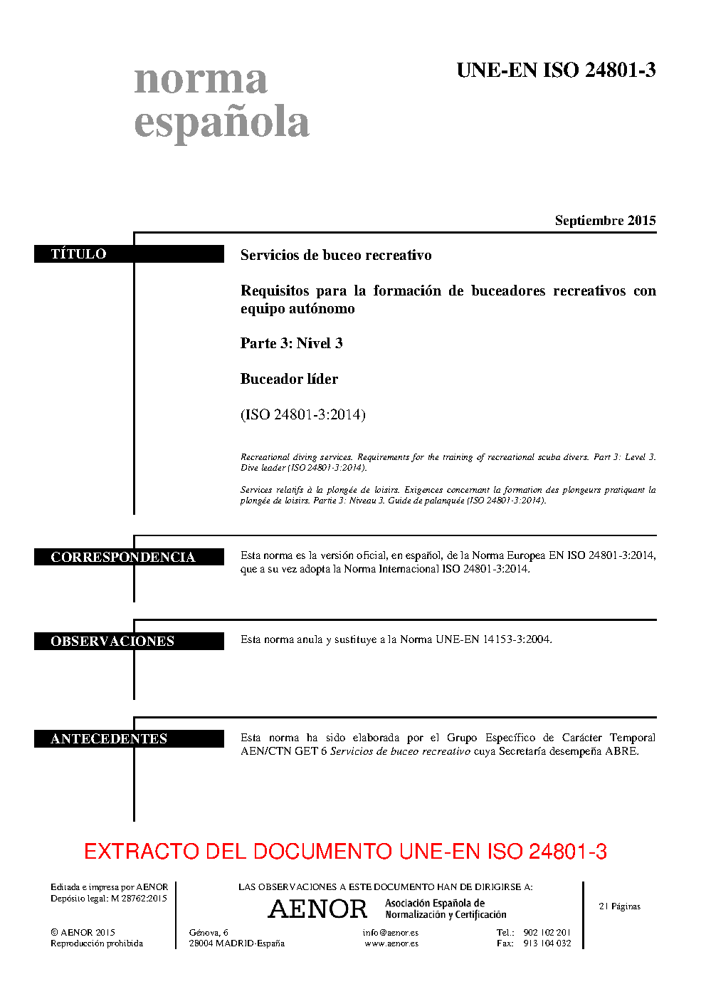 | Publisher | Asociacion Espanola de Normalizacion y Certificacion (AENOR) |