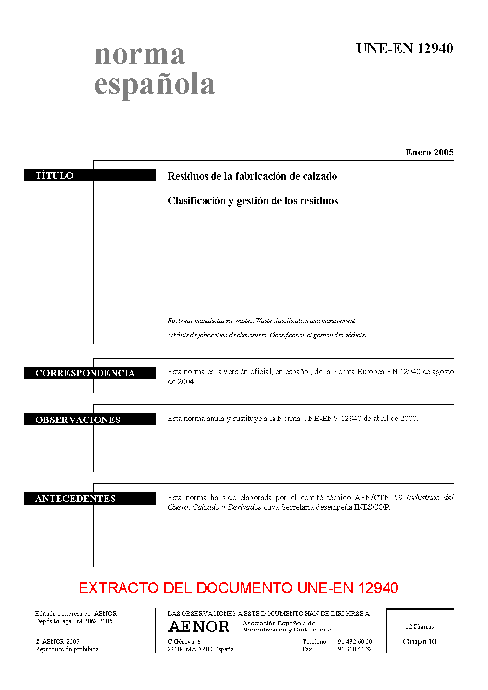 | Publisher | Asociacion Espanola de Normalizacion y Certificacion (AENOR) |