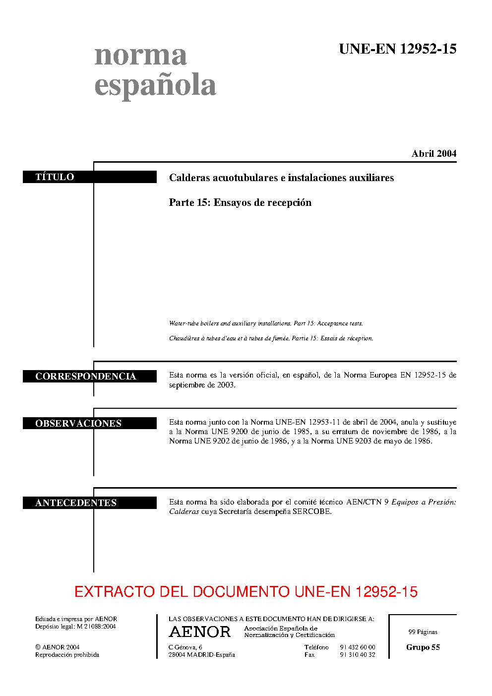 | Publisher | Asociacion Espanola de Normalizacion y Certificacion (AENOR) |
