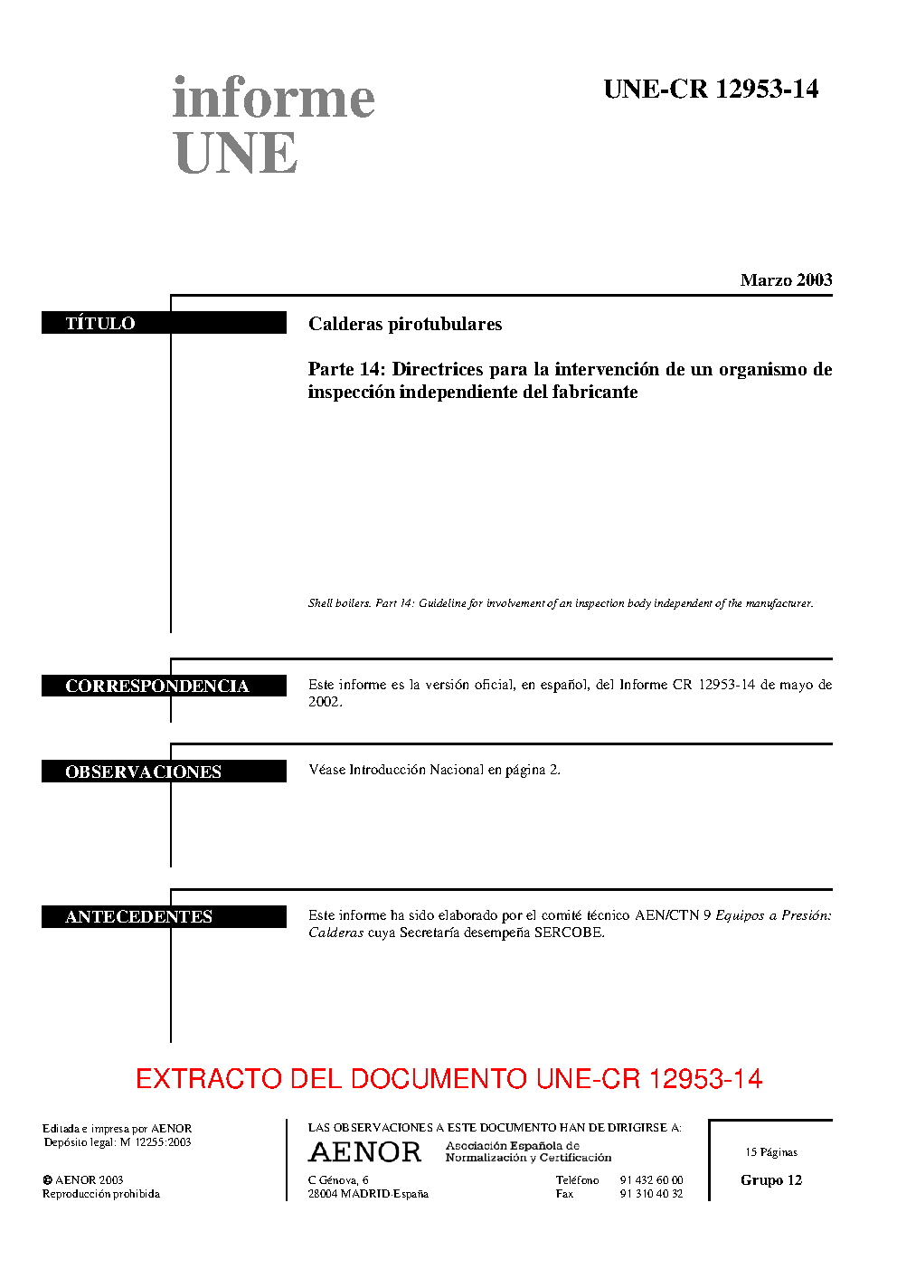 | Publisher | Asociacion Espanola de Normalizacion y Certificacion (AENOR) |