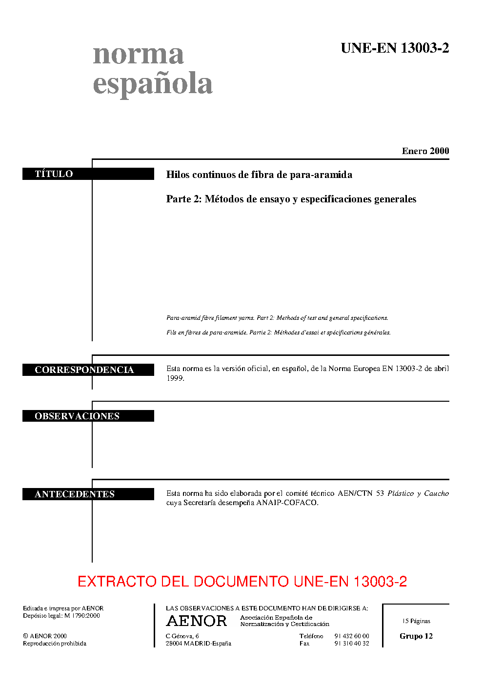 | Publisher | Asociacion Espanola de Normalizacion y Certificacion (AENOR) |