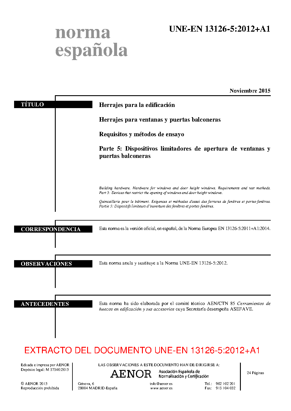 | Publisher | Asociacion Espanola de Normalizacion y Certificacion (AENOR) |