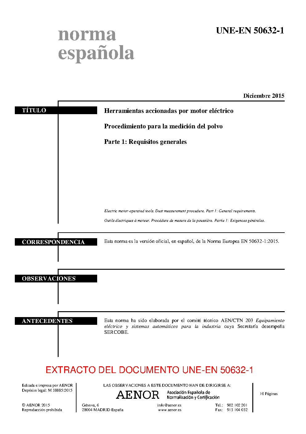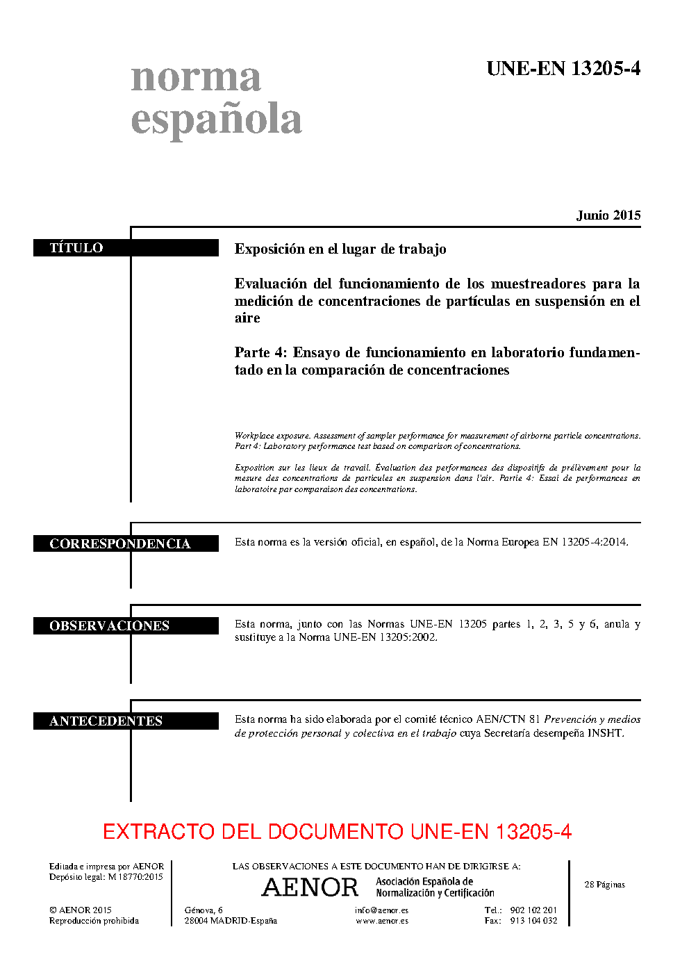 | Publisher | Asociacion Espanola de Normalizacion y Certificacion (AENOR) |