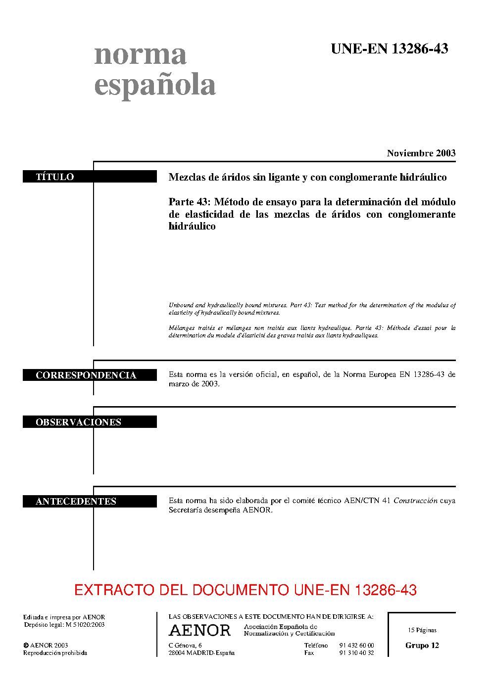 | Publisher | Asociacion Espanola de Normalizacion y Certificacion (AENOR) |