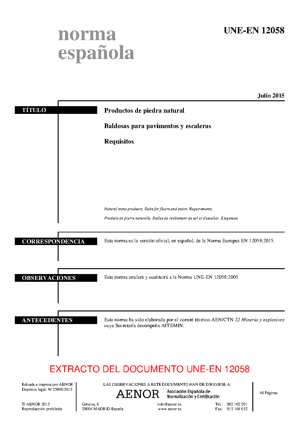 | Publisher | Asociacion Espanola de Normalizacion y Certificacion (AENOR) |