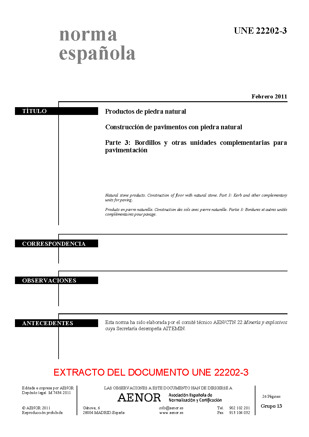 | Publisher | Asociacion Espanola de Normalizacion y Certificacion (AENOR) |