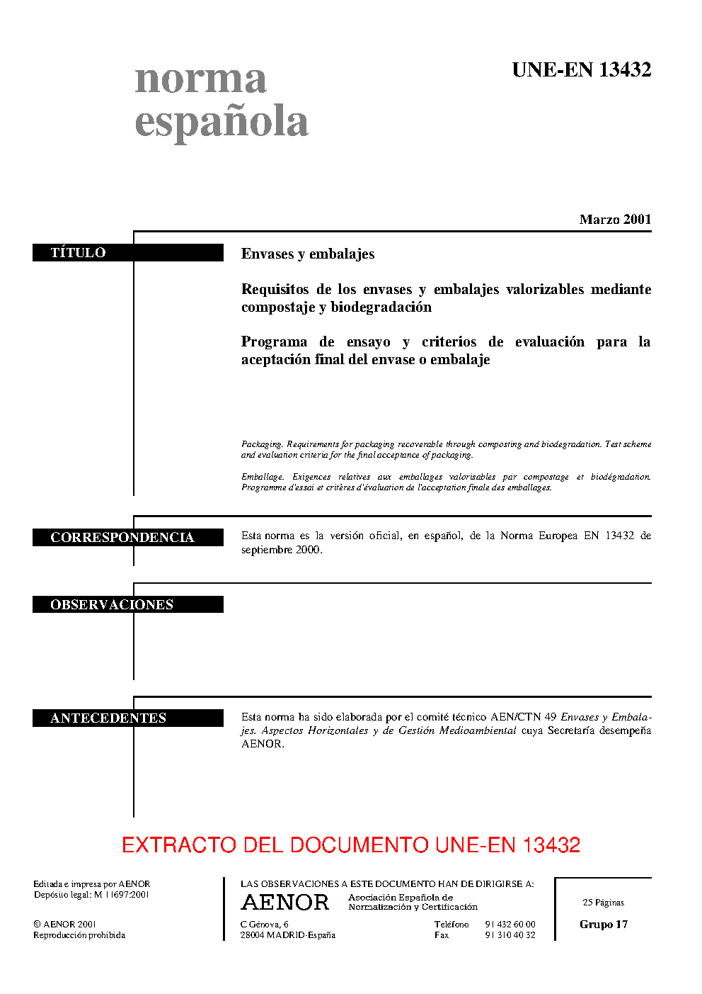 | Publisher | Asociacion Espanola de Normalizacion y Certificacion (AENOR) |