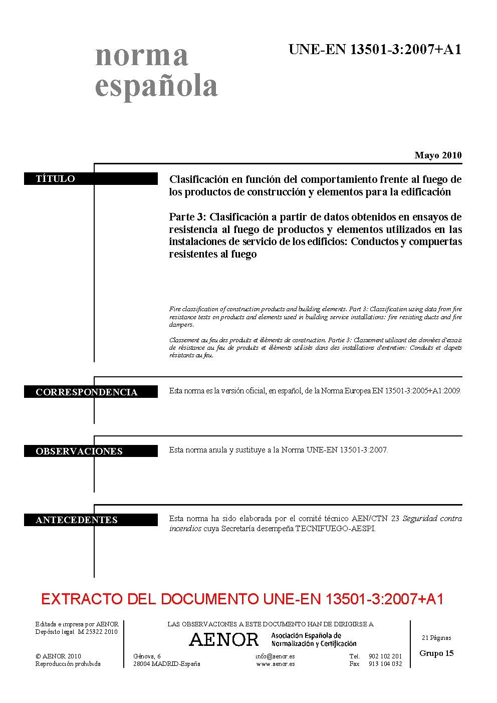 UNE-EN 13501-3:2007+A1:2010 (R2011)