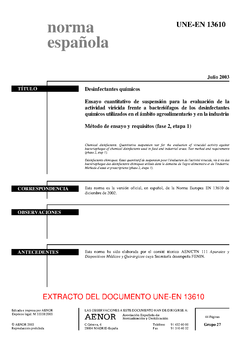 | Publisher | Asociacion Espanola de Normalizacion y Certificacion (AENOR) |