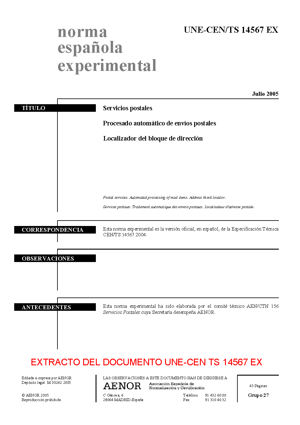 | Publisher | Asociacion Espanola de Normalizacion y Certificacion (AENOR) |