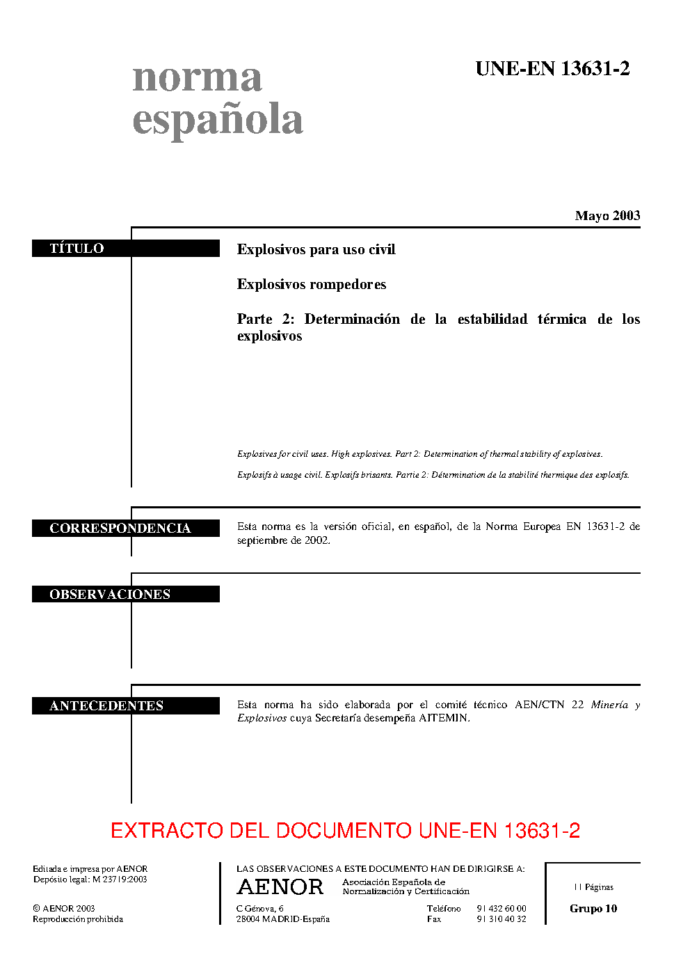 | Publisher | Asociacion Espanola de Normalizacion y Certificacion (AENOR) |
