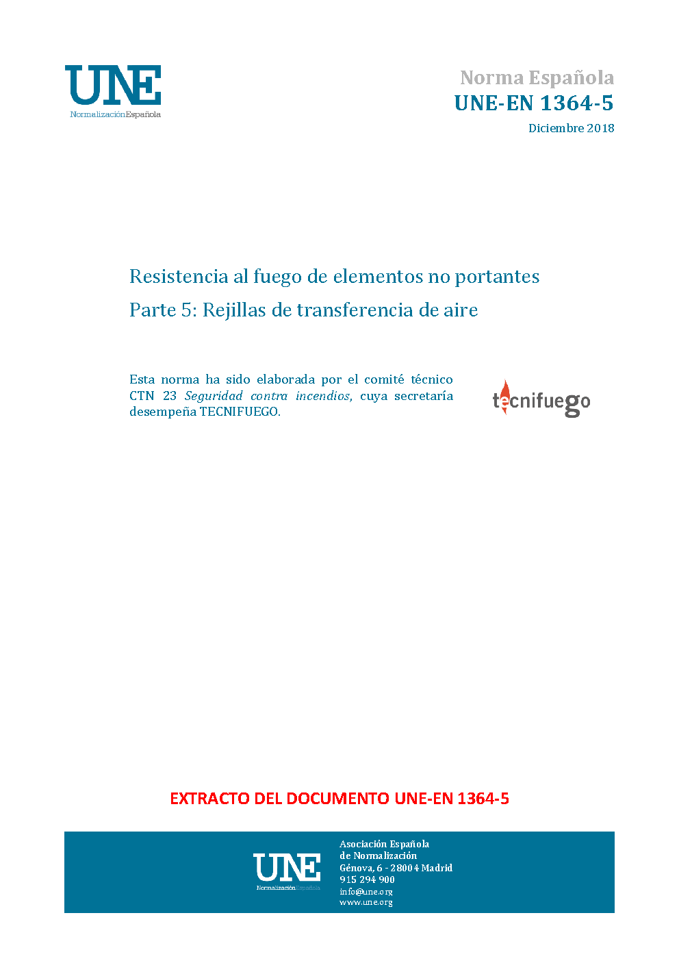 UNE-EN 1364-5:2018