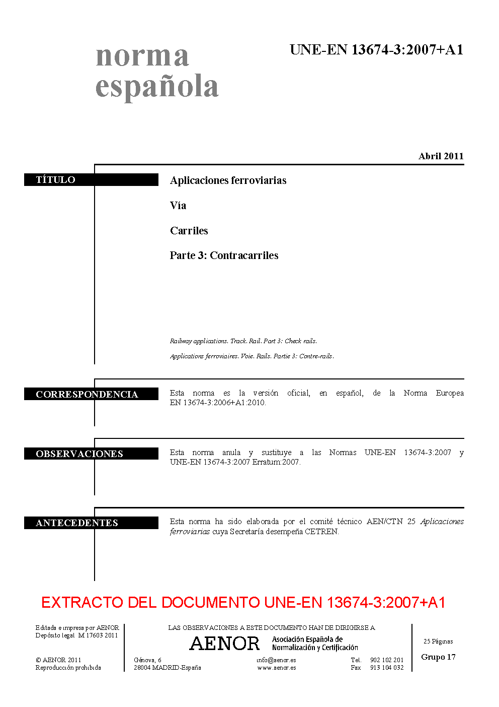 UNE-EN 13674-3:2007+A1:2011 (R2017)