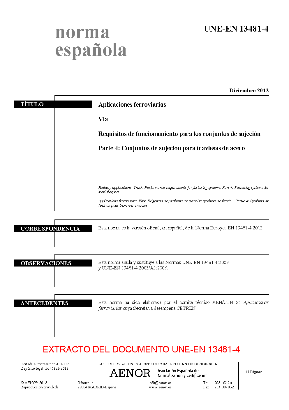 | Publisher | Asociacion Espanola de Normalizacion y Certificacion (AENOR) |
