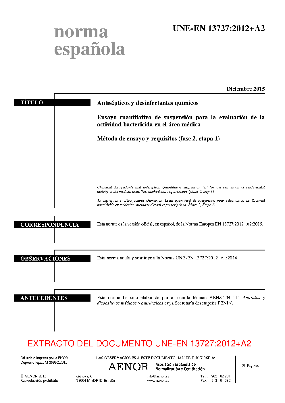 | Publisher | Asociacion Espanola de Normalizacion y Certificacion (AENOR) |