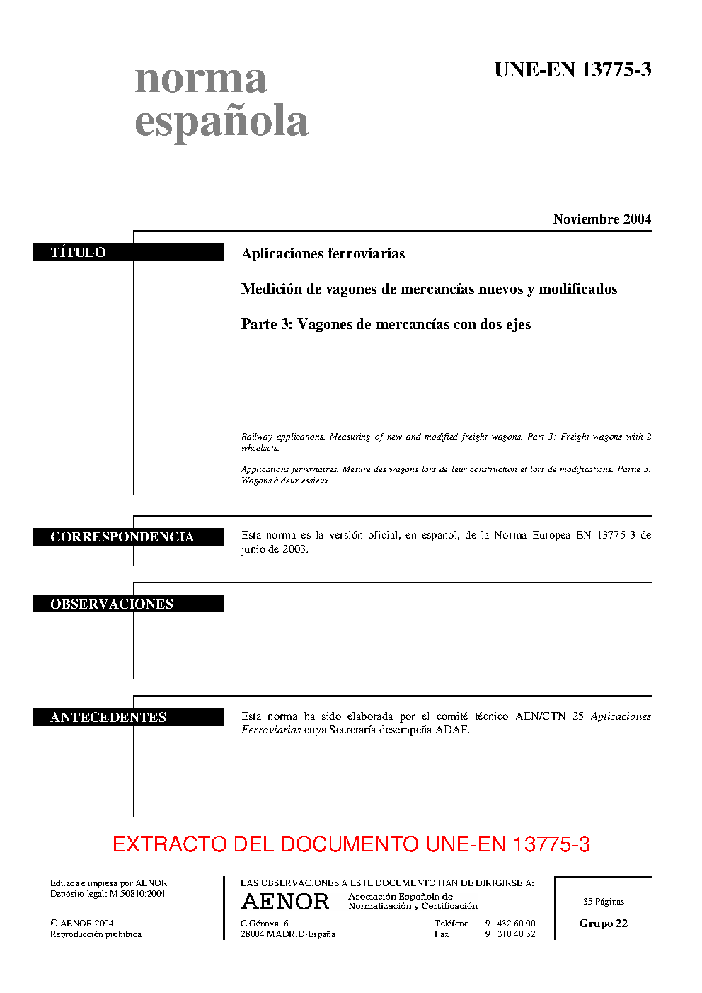 | Publisher | Asociacion Espanola de Normalizacion y Certificacion (AENOR) |
