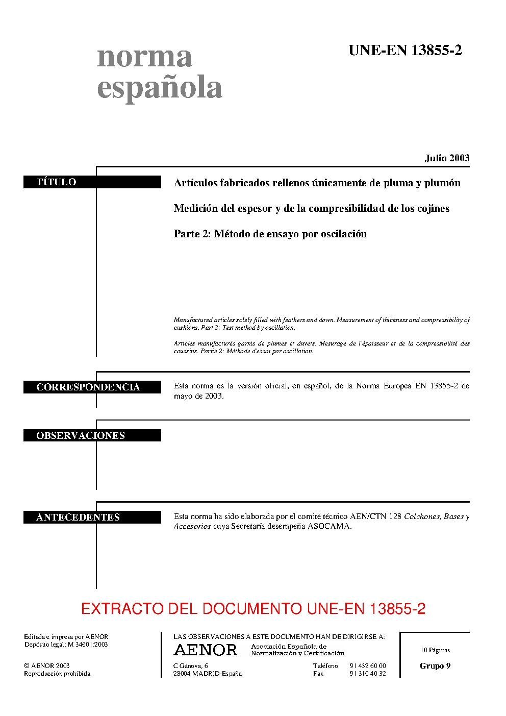 | Publisher | Asociacion Espanola de Normalizacion y Certificacion (AENOR) |