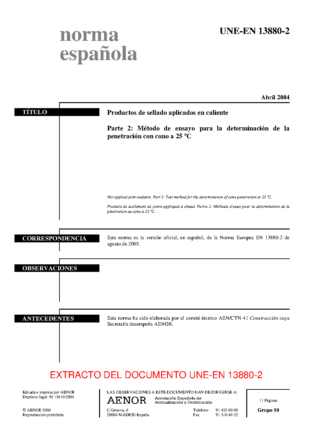 | Publisher | Asociacion Espanola de Normalizacion y Certificacion (AENOR) |