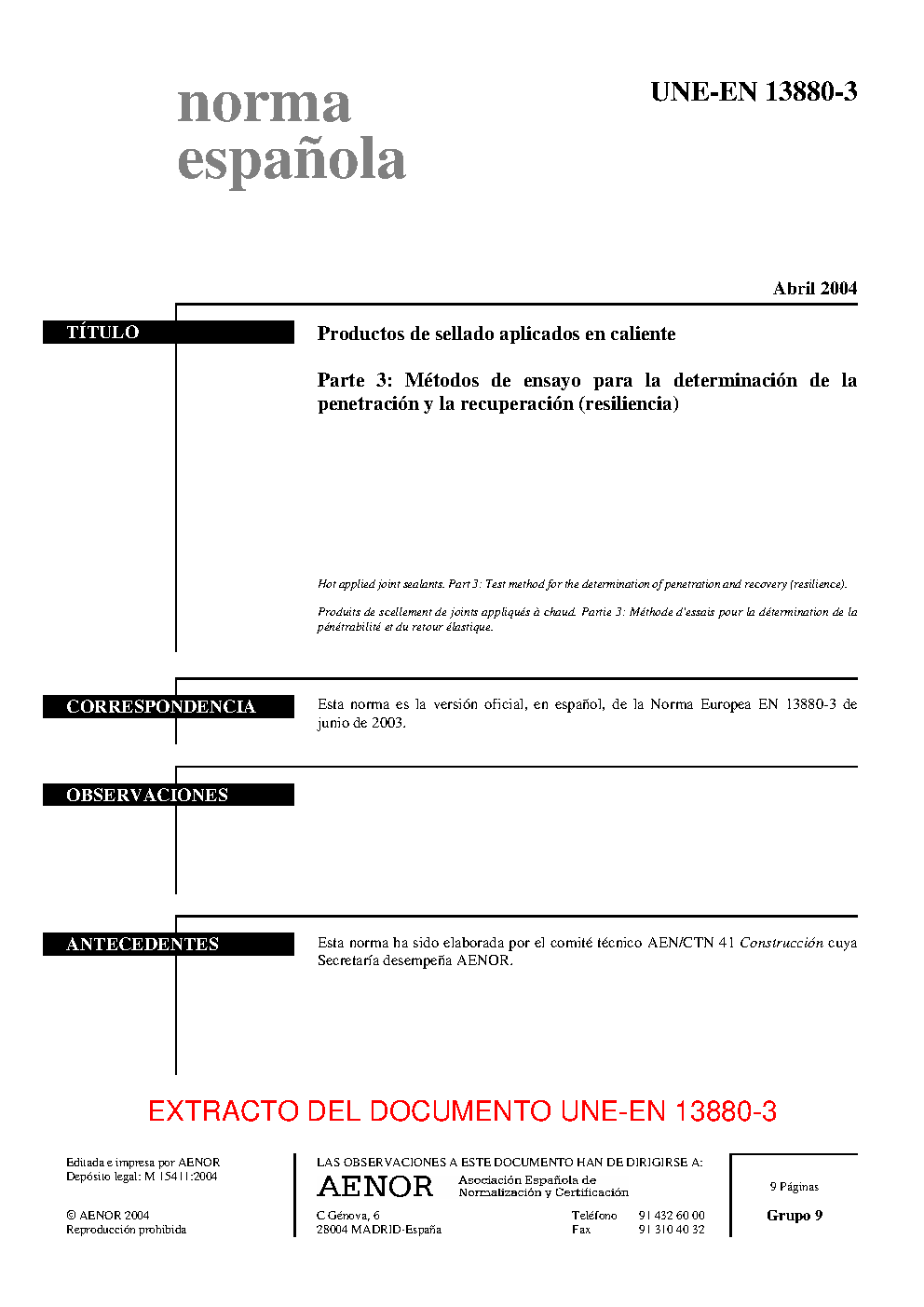 | Publisher | Asociacion Espanola de Normalizacion y Certificacion (AENOR) |