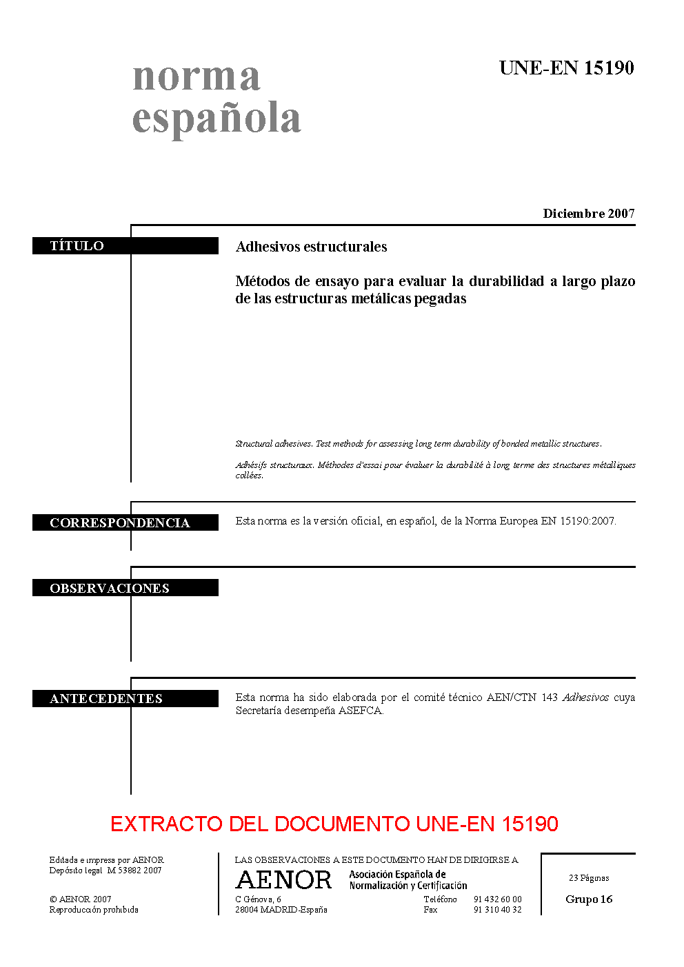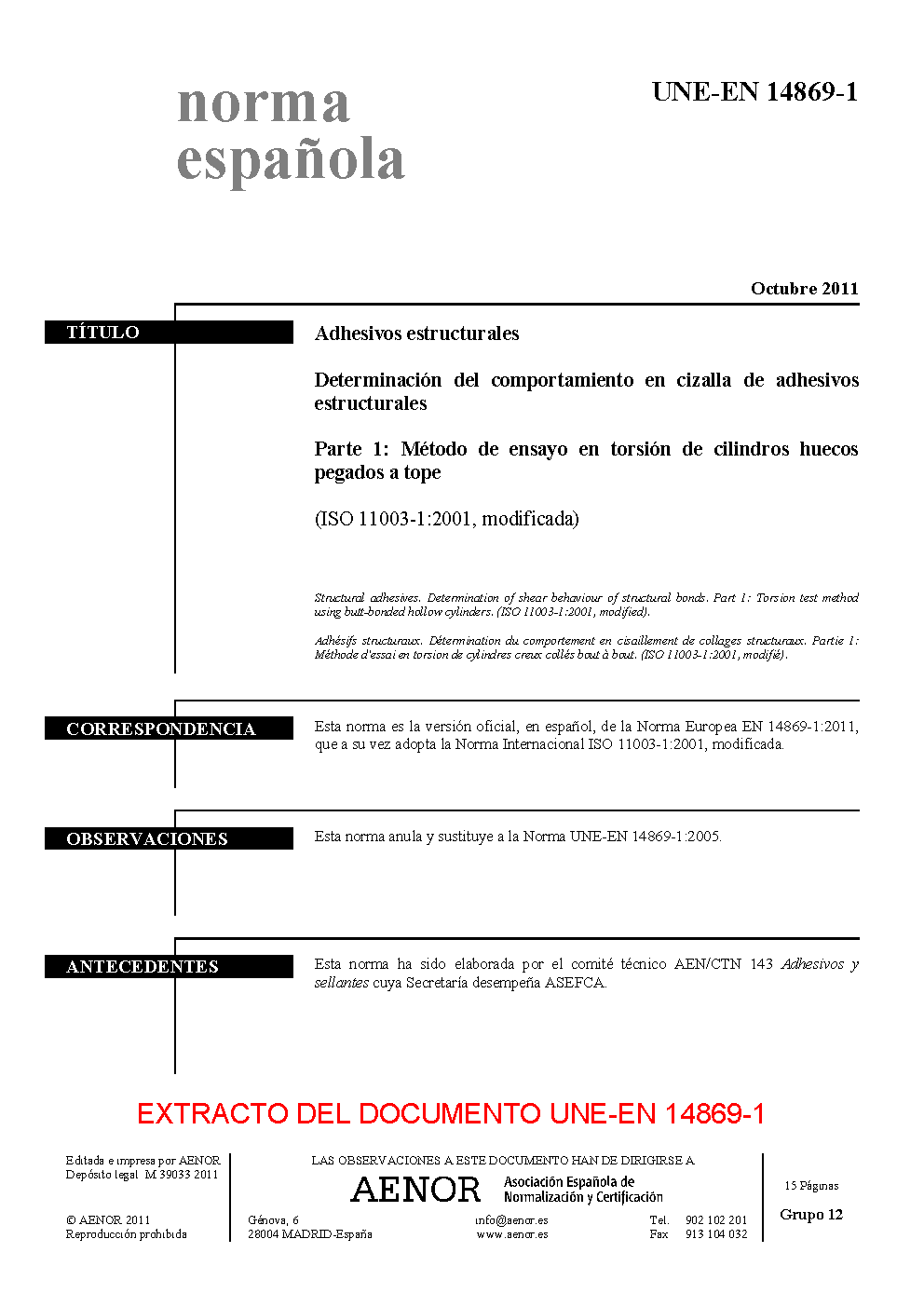 | Publisher | Asociacion Espanola de Normalizacion y Certificacion (AENOR) |