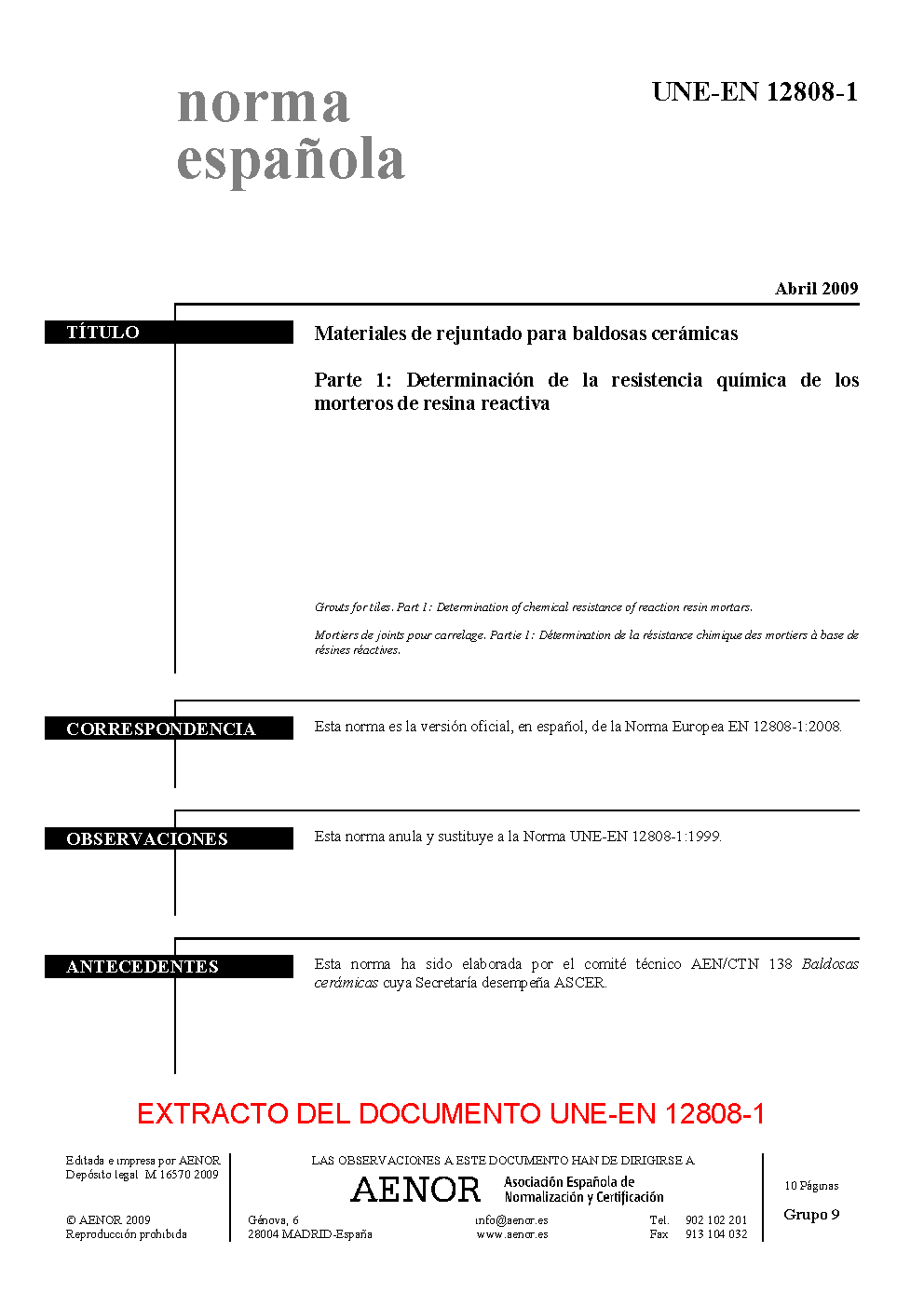 | Publisher | Asociacion Espanola de Normalizacion y Certificacion (AENOR) |