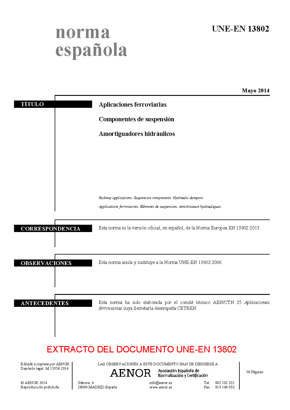 | Publisher | Asociacion Espanola de Normalizacion y Certificacion (AENOR) |