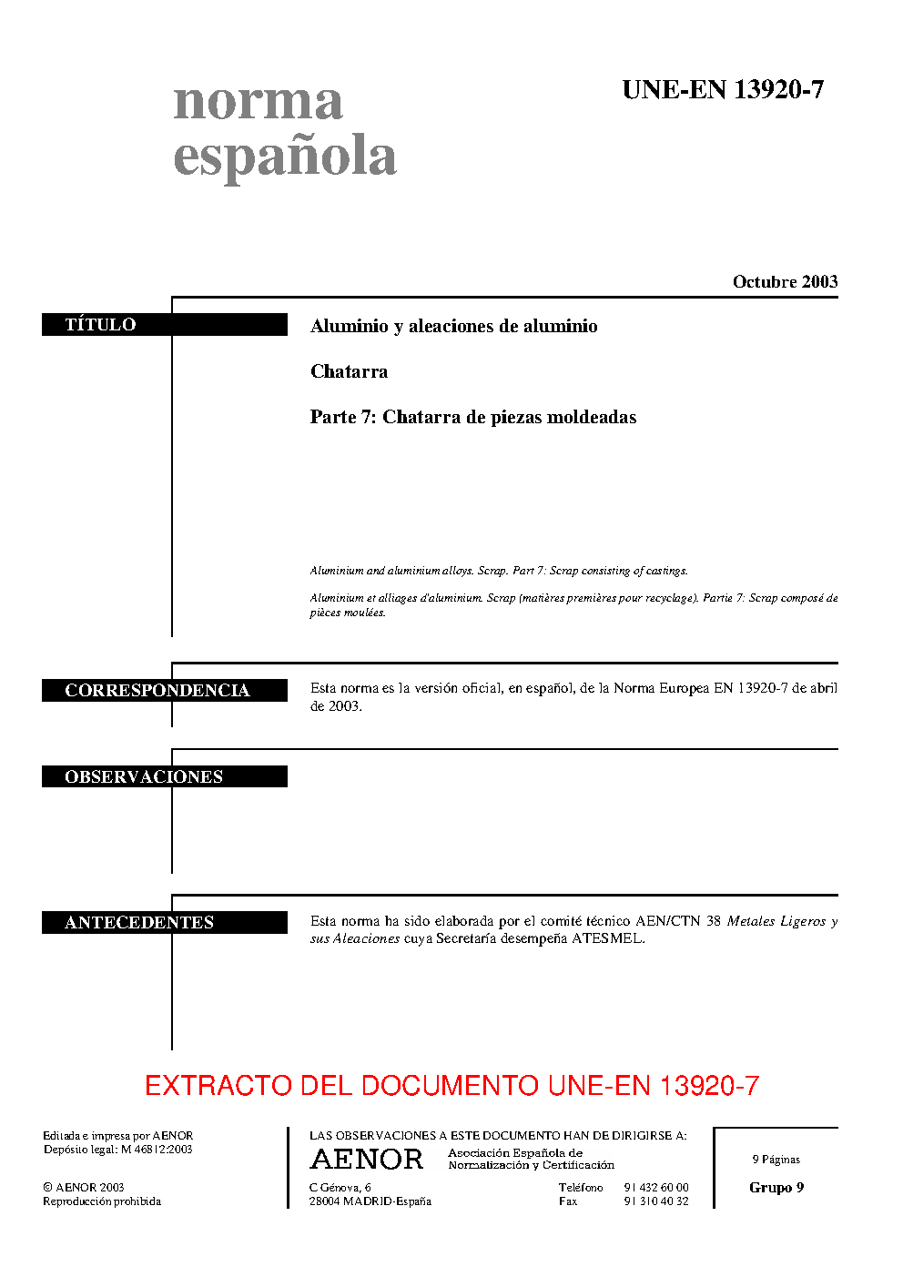 | Publisher | Asociacion Espanola de Normalizacion y Certificacion (AENOR) |