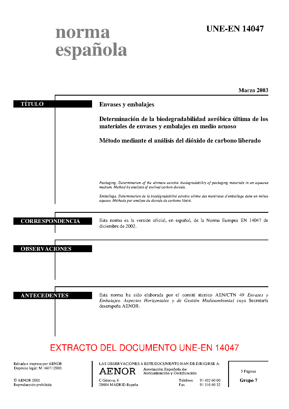UNE-EN 14047:2003 (R2019)