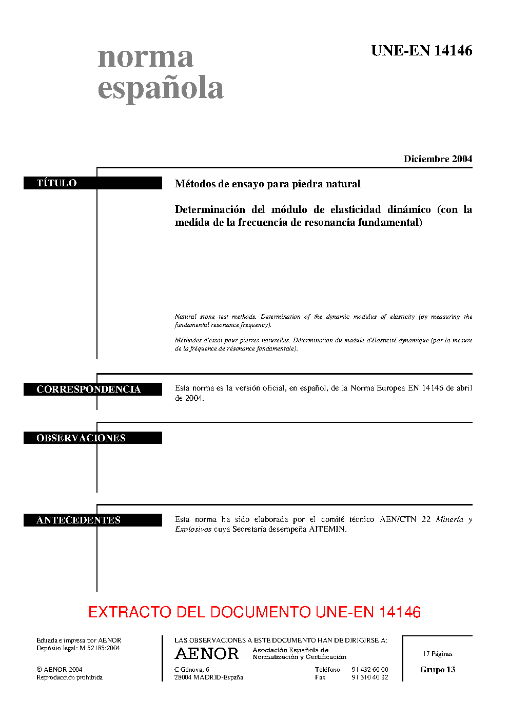 | Publisher | Asociacion Espanola de Normalizacion y Certificacion (AENOR) |