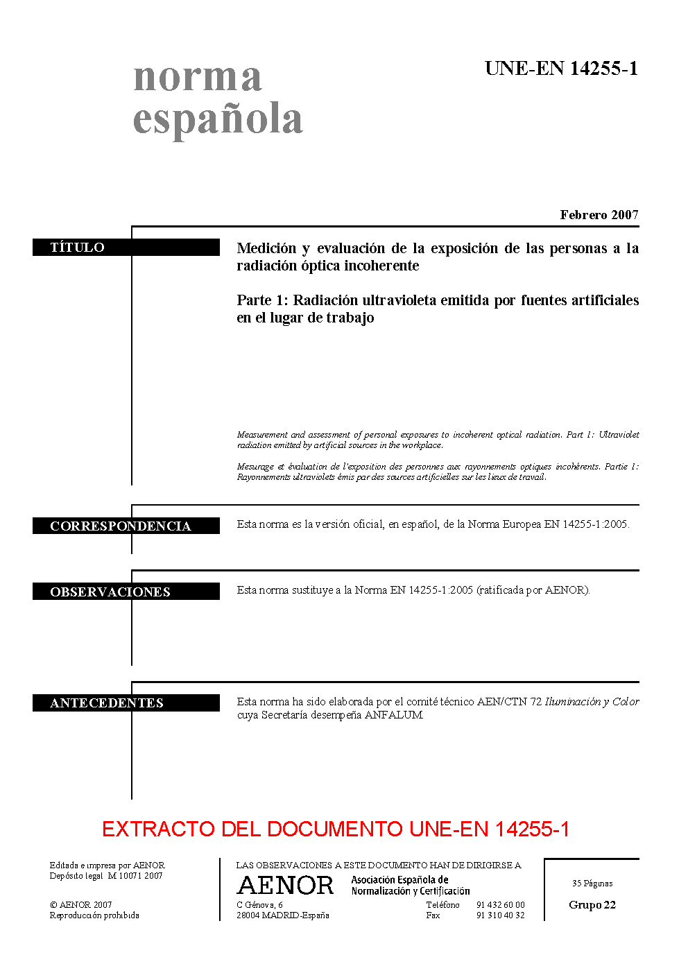 | Publisher | Asociacion Espanola de Normalizacion y Certificacion (AENOR) |