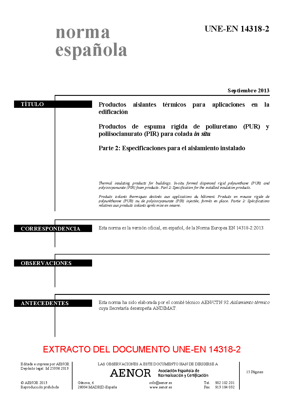| Publisher | Asociacion Espanola de Normalizacion y Certificacion (AENOR) |