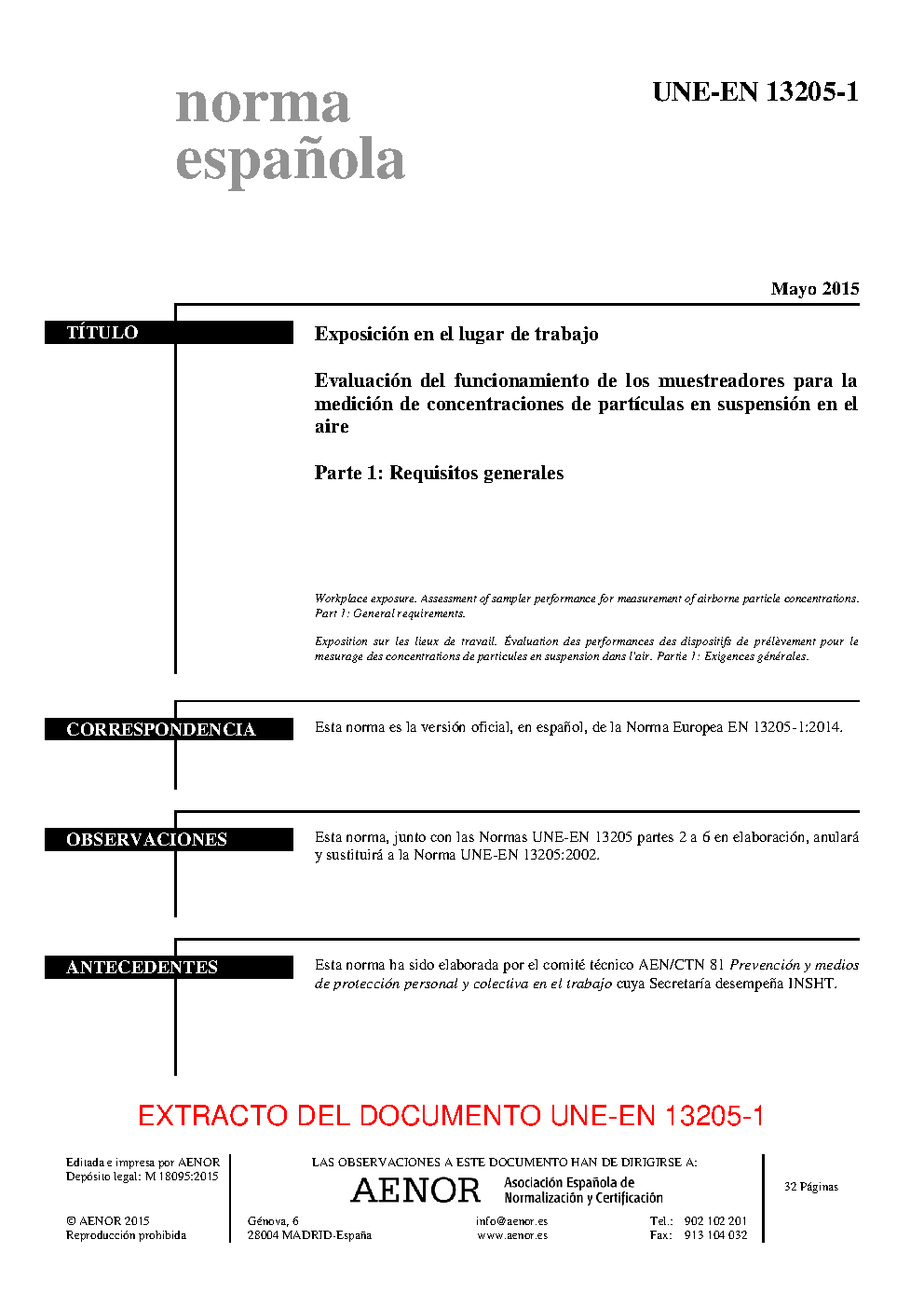 | Publisher | Asociacion Espanola de Normalizacion y Certificacion (AENOR) |