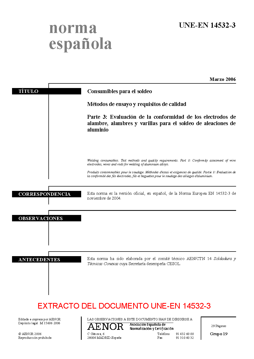 | Publisher | Asociacion Espanola de Normalizacion y Certificacion (AENOR) |