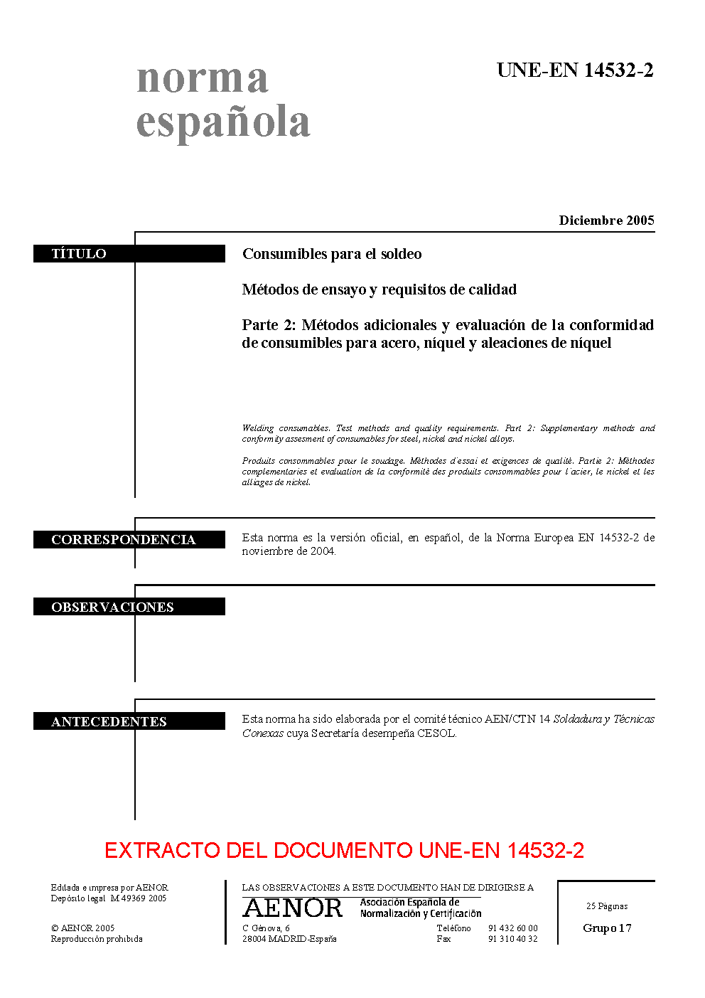 | Publisher | Asociacion Espanola de Normalizacion y Certificacion (AENOR) |