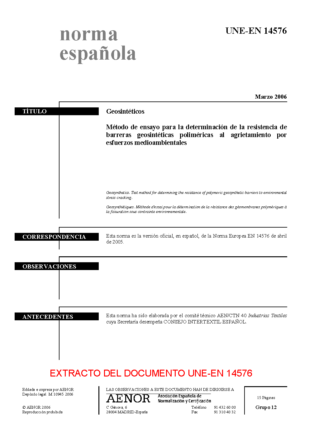 | Publisher | Asociacion Espanola de Normalizacion y Certificacion (AENOR) |