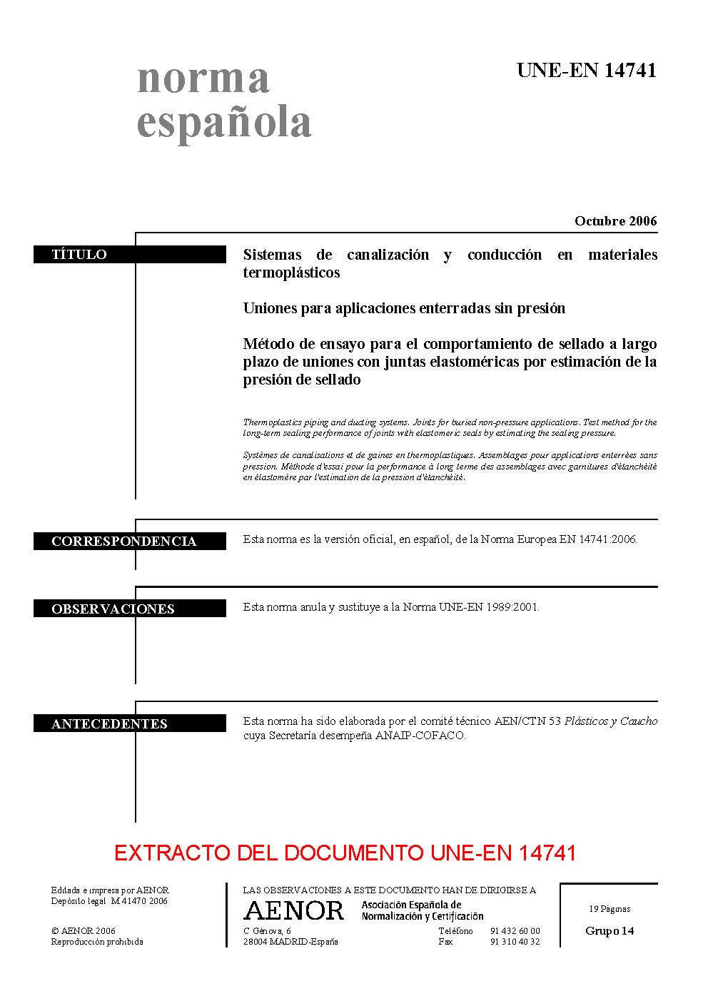| Publisher | Asociacion Espanola de Normalizacion y Certificacion (AENOR) |