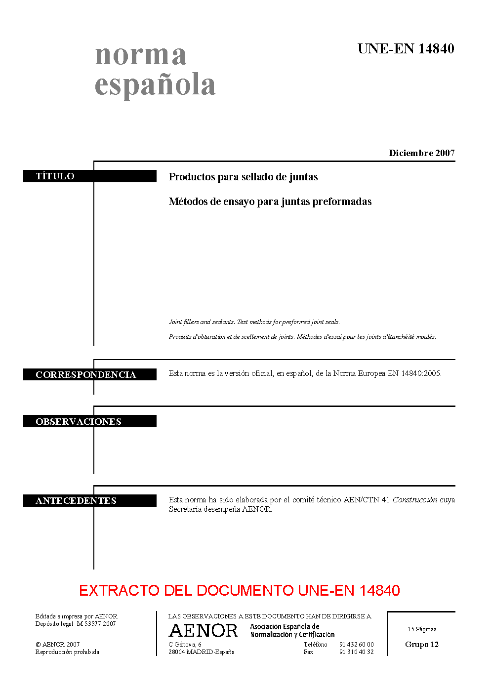 | Publisher | Asociacion Espanola de Normalizacion y Certificacion (AENOR) |