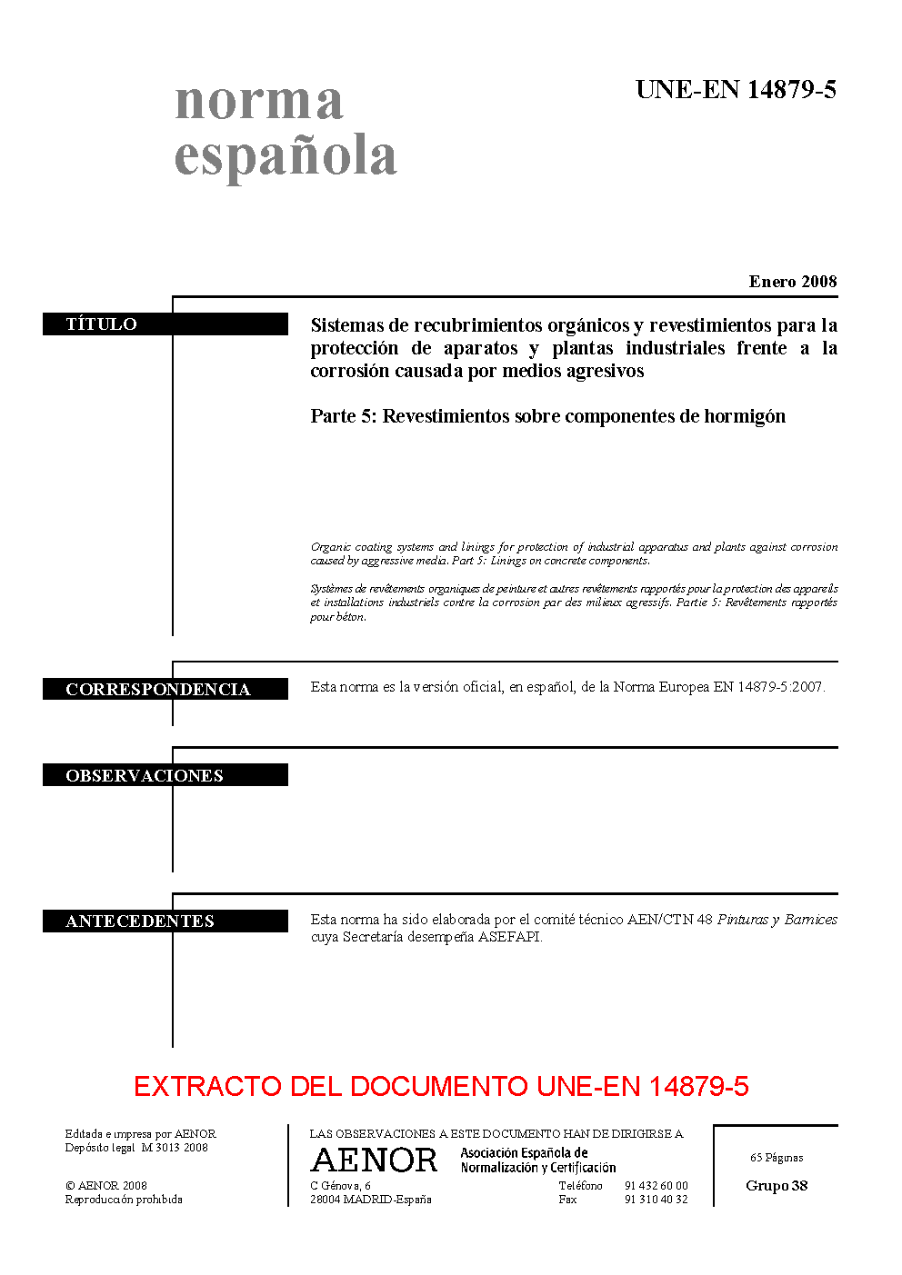 | Publisher | Asociacion Espanola de Normalizacion y Certificacion (AENOR) |