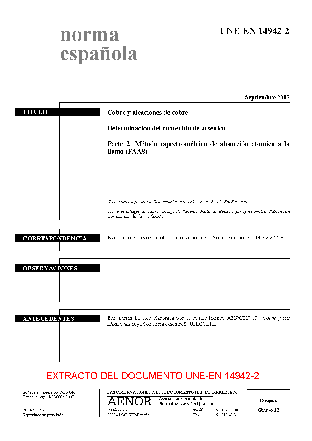 | Publisher | Asociacion Espanola de Normalizacion y Certificacion (AENOR) |
