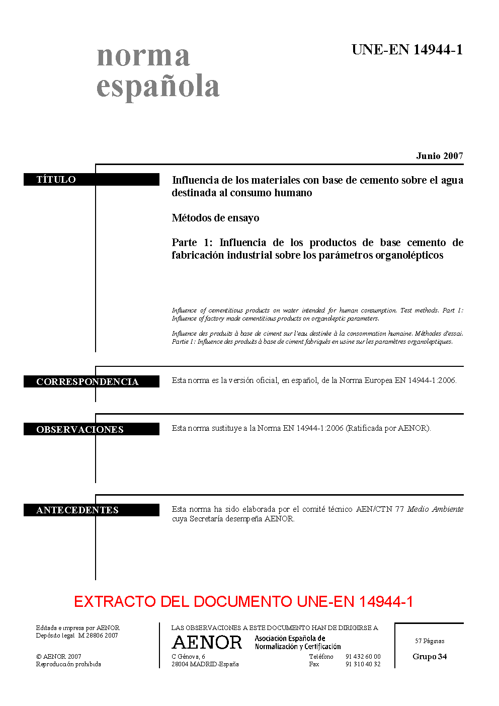 UNE-EN 14944-1:2007
