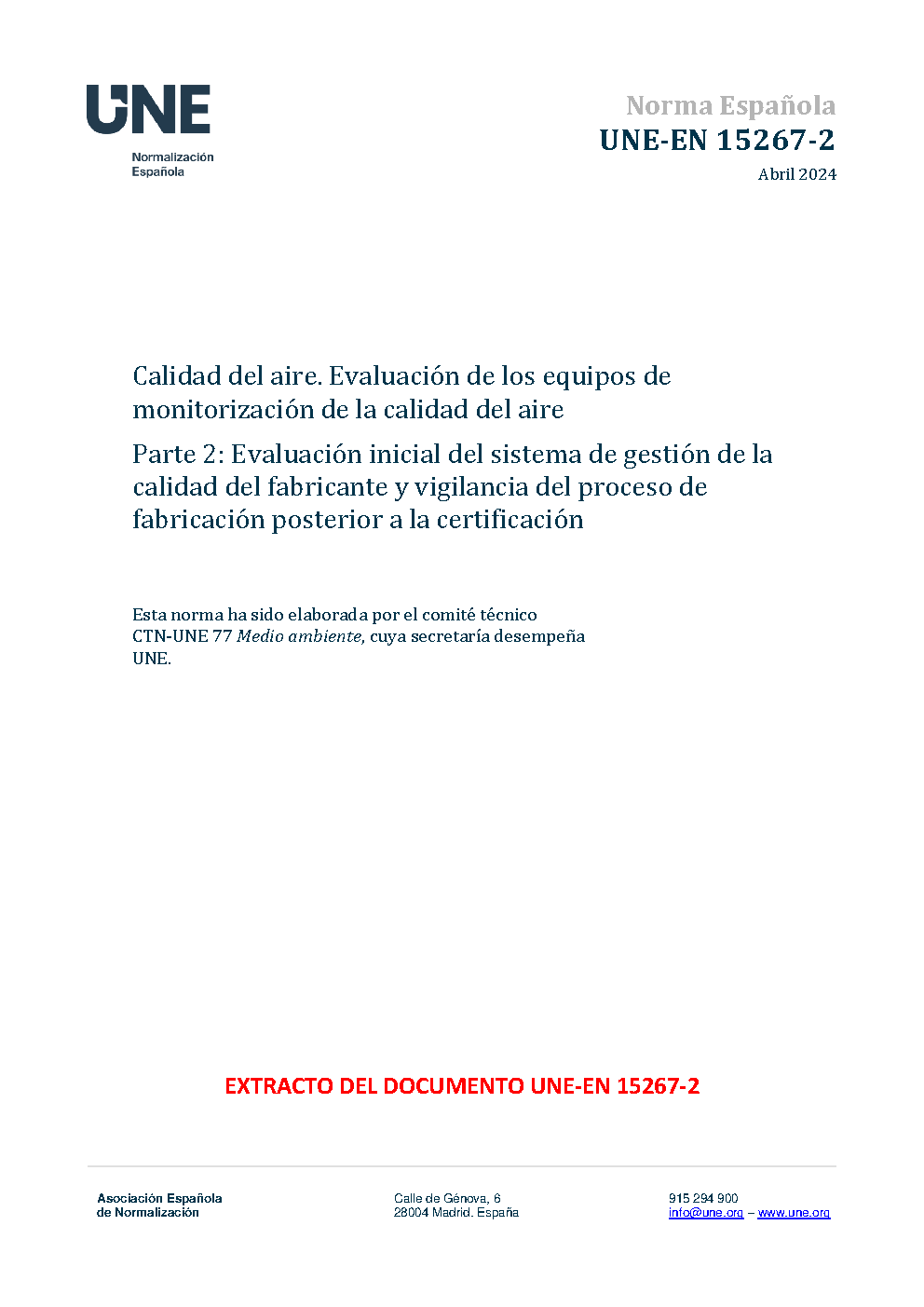 | Publisher | Asociacion Espanola de Normalizacion y Certificacion (AENOR) |