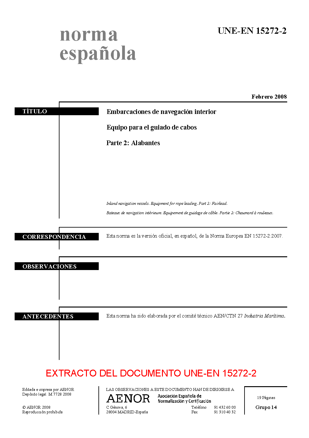 | Publisher | Asociacion Espanola de Normalizacion y Certificacion (AENOR) |