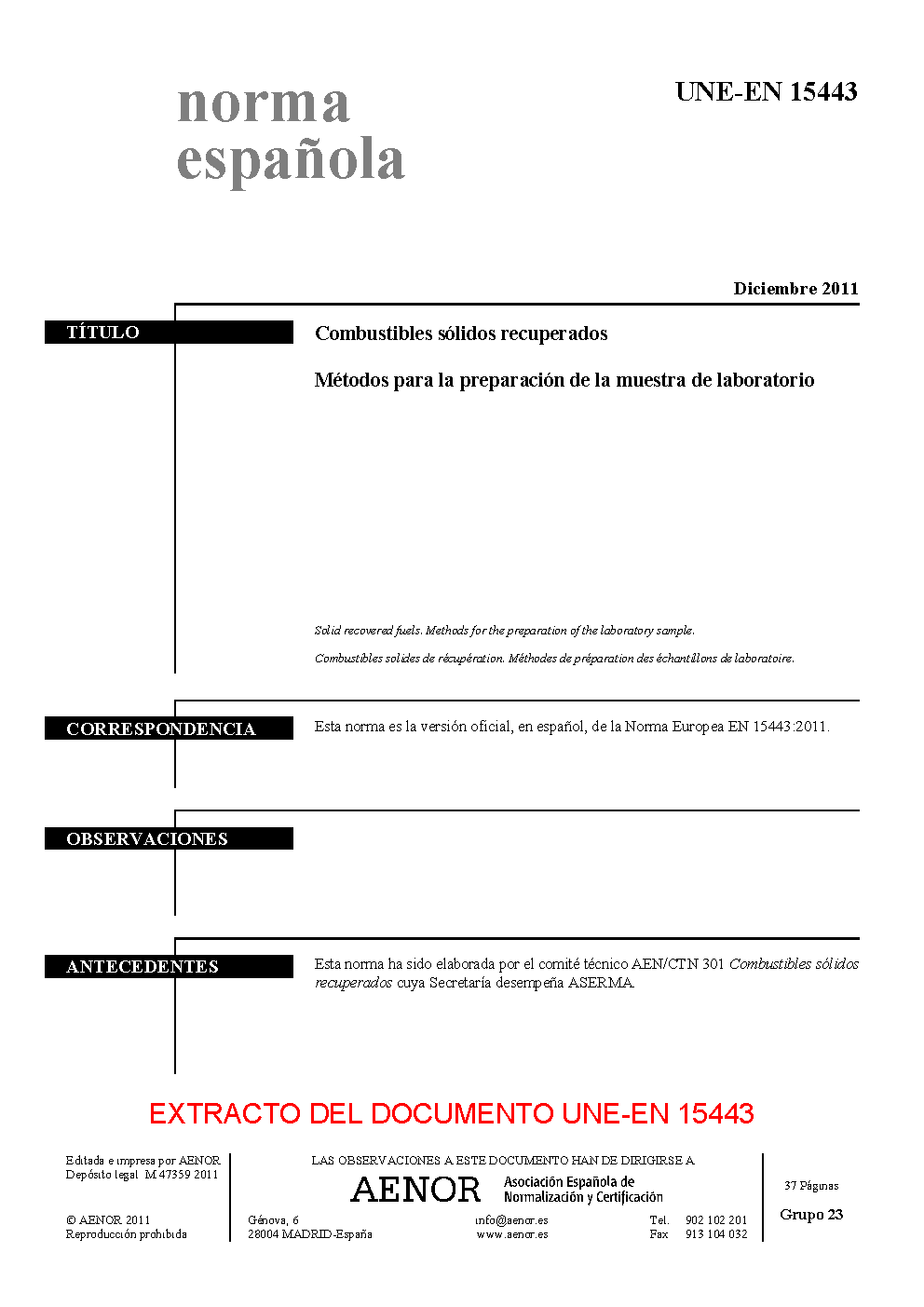 | Publisher | Asociacion Espanola de Normalizacion y Certificacion (AENOR) |