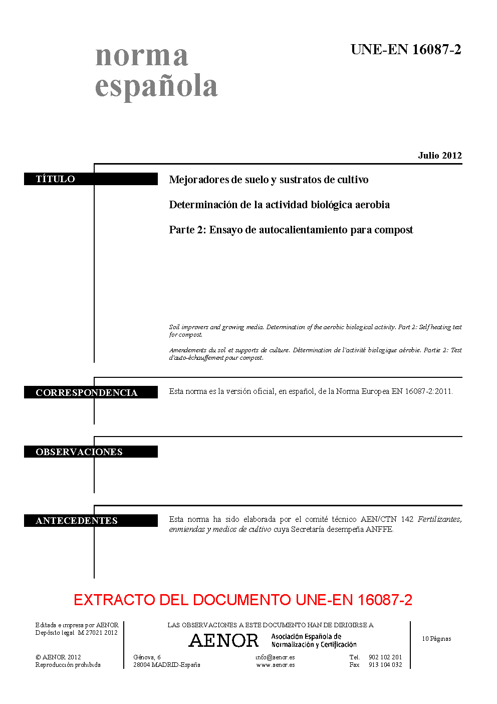 | Publisher | Asociacion Espanola de Normalizacion y Certificacion (AENOR) |