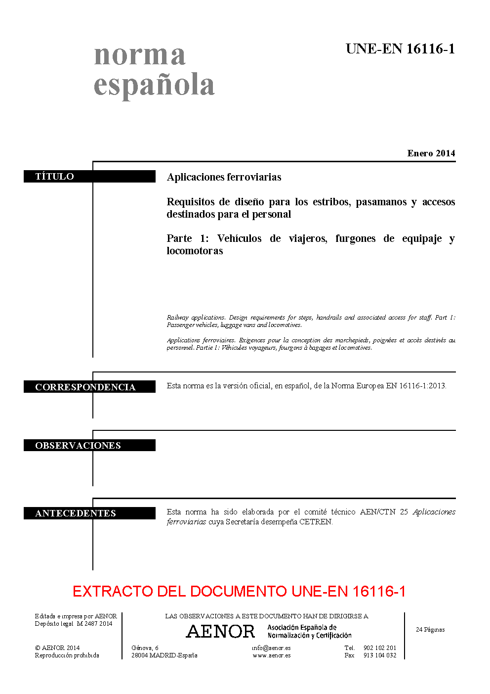 | Publisher | Asociacion Espanola de Normalizacion y Certificacion (AENOR) |
