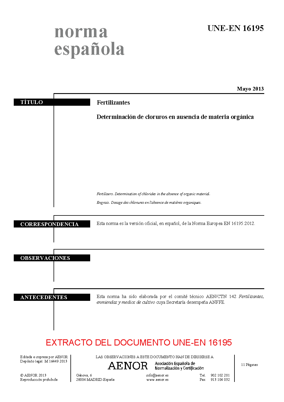 | Publisher | Asociacion Espanola de Normalizacion y Certificacion (AENOR) |