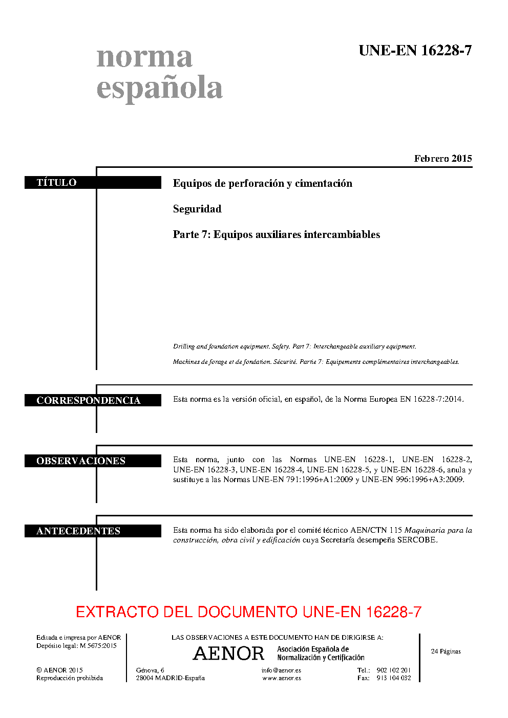 | Publisher | Asociacion Espanola de Normalizacion y Certificacion (AENOR) |
