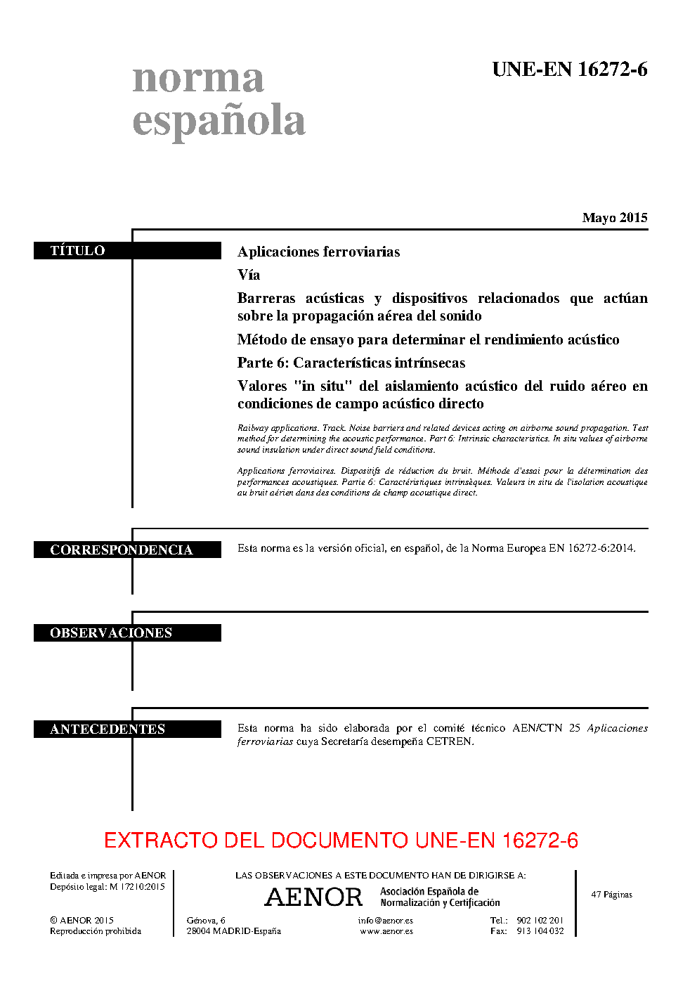| Publisher | Asociacion Espanola de Normalizacion y Certificacion (AENOR) |